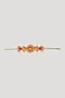 Featuring a matte gold finish layered necklace with yellow and hot pink embroidery, including pearl hangings, set in mixed metal. It is paired with a matching pair of earrings, a maang tikka and a bracelet. Perfect choice for haldi, mehendi ceremony and other Indian festivities.