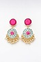 Featuring a pair of matte gold finish dangler earrings with sky blue and pink zari embroidery, including pearl hangings, set in mixed metal. Perfect choice for weddings and other Indian festivities.