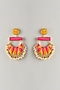 Featuring a pair of dangler earrings studded with multi-colored stones, set in brass and silk thread. This jewellery adds a festive pop of color, perfect for haldi, mehendi, family functions or daytime festive celebrations.