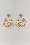 Featuring a pair of dangler earrings studded with multi-colored stones, set in brass and silk thread. This jewellery adds a festive pop of color, perfect for haldi, mehendi, family functions or daytime festive celebrations.