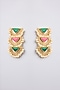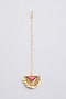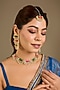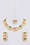 Featuring a multi-colored necklace with thread embroidery, set in mixed metal. It is paired with a matching pair of earrings and a maangtikka. Perfect for festive occasions or pooja ceremony, this jewellery is a wardrobe must for those who love to shine effortlessly.
