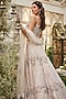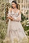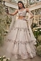 Featuring an ivory lehenga in organza base with sequins, 3D floral, beads and pearl hand embroidery. It is paired with an embroidered blouse, a dupatta and a pair of sheer embellished gloves. Accentuate it with pearl jewellery, soft curls and block heels, ideal for weddings or engagement ceremonies.
