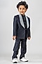 Featuring a black blazer for boys in premium cotton suiting fabric base with pearl work. It is paired with a tuxedo shirt and trousers. Style it with a watch and pair of shoes for a festive occasion or reception ceremony.