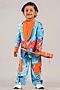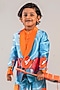 Featuring turquoise blue and orange blazer for boys in polyester satin base with print. It is paired with a tuxedo shirt and pants. Style it with a watch and pair of shoes for birthday parties and themed parties.