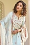 Featuring a blue kurta in pure silk base with nakshi, gota, resham and zardosi embroidery. It is paired with sharara pants and a silk organza dupatta. Style it with statement jewellery and heels for a wedding or sangeet ceremony.