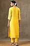 Featuring a yellow kurta in handloom chanderi silk base with resham and sequins embroidery. It is paired with embroidered pants having elasticated waist and a silk dupatta. Style it with statement jewellery and heels for a festive occasion or haldi ceremony.