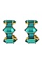 Featuring a pair of gold finish mini hoops earrings studded with emerald green swarovski crystal and baguette crystals, set in brass.