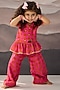 Featuring a pink peplum top for girls in cotton muslin base with a V-neckline, polka dot and pearl detailing. It is paired with pants having an elasticated waistband. Style it with floral hairband and soft sandals for an adorable, breezy look, ideal for birthday parties, casual outings or festive family events.
