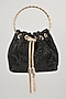 Featuring a black bucket bag in velvet base with crystal embellishments. It has a nylon lining. A stunning statement piece that elevates any outfit, perfect for weddings, festive functions, sangeet, and elegant evening events.