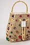 Featuring a gold bucket bag in korean silk base. It has a handle and satin lining. Style it with elegant evening gowns, embellished lehengas or chic cocktail dresses for a refined look, making it ideal for wedding receptions, cocktail parties, festive celebrations or evening wear.