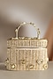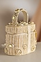 Featuring a gold bucket bag in korean silk base with polki embellishments. It has a satin lining. Designed for both style and comfort, this bag add a touch of elegance to any outfit, perfect for weddings, festive occasions, and ethnic or fusion outfits.