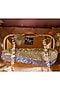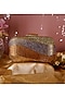 Featuring a gold clutch in metal base with crystal work. It has an artificial leather lining. Carry it as a statement piece with an evening gown or traditional attire for weddings, events, gala nights, or festive celebrations.