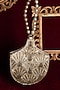 Featuring a gold potli in satin base with embellishments. It has a satin lining and pearl handle. Perfect for weddings, sangeet nights, mehendi ceremonies, festive parties, and elegant evening celebrations.