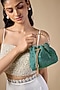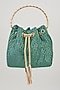 Featuring a green bucket bag in velvet base with crystal embellishments. It has a nylon lining. A stunning statement piece that elevates any outfit, perfect for weddings, festive functions, sangeet, and elegant evening events.