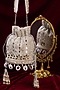 Featuring an ivory bucket bag in silk base with pearl and mirror work. Carry it as a statement piece with traditional attire for weddings, events, or festive celebrations.