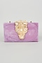 Featuring a lilac hand-poured clutch in resin base with molten gold detailing. It has a suede lining.