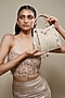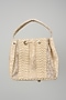 Featuring a beige rectangular-shaped bucket bag in faux leather base with woven jute lace detail. It has a cotton lining. Perfect for elevating your ethnic ensembles on any occasion.