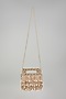 Champagne Gold Faux Leather Beads Embellished Square-Shaped Clutch