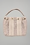 Featuring a pink rectangular-shaped bucket bag in faux leather base with woven jute lace detail. It has a cotton lining. Perfect for elevating your ethnic ensembles on any occasion.