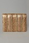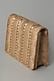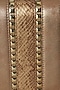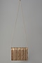 Featuring a rose gold and copper clutch in faux leather base with two chain handles. It has a velvet lining.