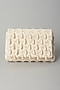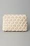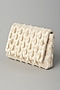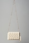 Featuring a white clutch in vegan leather and suede base with pearls. It has a velvet lining.