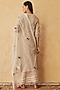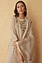 Featuring an beige kurta in chanderi base with hand applique and french knot embroidery. It is paired with matching tulip cut pants and a chanderi checkered dupatta having butti embroidery.
