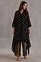 Featuring a black kurta in satin tissue base with zari embroidery. It is paired with golden-brown tissue silk pants and an upada silk slip. Accentuate it with statement earrings and strappy heels for festive gatherings or family functions.