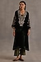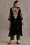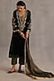 Featuring a bottle green kurta in velvet base with gota, tilla, dabka and zardosi hand work, including tissue silk embroidered yoke detail. It is paired with green tissue silk pants and a green tissue dupatta. Accentuate it with statement earrings and strappy heels for festive gatherings or family functions.