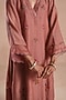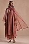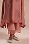 Featuring a copper pink kurta in chanderi silk base with floral embroidery. It is paired with cotton pants, a cotton slip and an organza dupatta. Style it with oxidised jewellery and heels for festive look or family celebrations.
