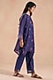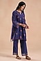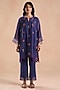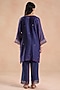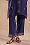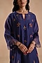 Featuring a deep blue kurta in chanderi silk base with floral embroidery and lace detailing. It is paired with cotton straight pants and a cotton slip. Style it with oxidised jewellery and heels for festive look or family celebrations.