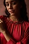 Fitted at bust and waist.