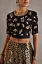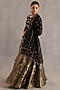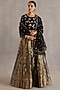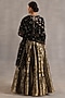 Featuring a gold handwoven lehenga in brocade silk base. It is paired with a black raw silk blouse having nakshi and zardosi embroidery, including an organza dupatta. Accentuate it with statement earrings and strappy heels for sangeet or wedding ceremonies.