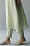 Featuring a green A-line kurta in handloom chanderi base with hand embroidery. It is paired with a matching cotton pants and a slip.
