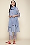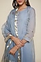 Featuring a grey kurta in chanderi and organza base with french embroidery. It is paired with matching cotton pants and a stole.