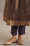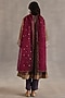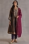 Featuring a grey kurta in tissue silk base with dabka, zari, tilla, mukaish and sequins embroidery. It is paired with purple habutai silk pants and an organza berry dupatta. Accentuate it with statement earrings and strappy heels for festive gatherings or family functions.