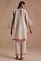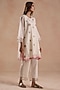 Featuring an ivory kurta in chanderi silk base with floral embroidery and lace detailing. It is paired with cotton straight pants and a cotton slip. Style it with oxidised jewellery and heels for festive look or family celebrations.