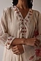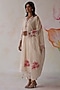 Featuring an ivory A-line kurta in silk chanderi base with a V-neckline, french knot and beads hand embroidery. It is paired with cotton mul pants, a slip and a chanderi dupatta having floral hand embroidery. Accentuate with statement jewellery and heels for a festive occasion or pooja ceremony.
