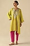 Featuring a lime green kurta in habutai silk base with gota hand embroidery. It is paired with fuchsia pants having sequin embroidery. Style it with statement earrings and embroidered juttis, perfect for daytime festive gatherings, haldi or pre-wedding events.