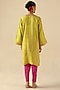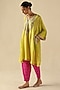 Lime Green Habutai Silk Gota Hand Embroidered Kurta Set