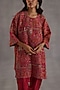 Featuring a magenta short kurta in habutai silk base with badla, sequins and zari embroidery. It is paired with salwar pants. Accentuate it with statement earrings and strappy heels for festive gatherings or family functions.