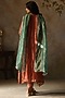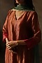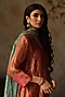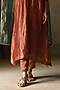 Featuring a metallic peach kurta in silk tissue base with zari woven detail. It is paired with pants, a satin slip and a turquoise silk tissue stole. Accentuate it with statement jewellery and heels for a festive occasion or engagement ceremony.