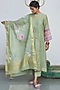 Featuring a mint kurta in chanderi base with embroidery and pleated cut. It is paired with matching cotton pants, an inner, and a dupatta.