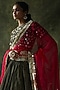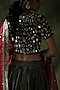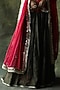Featuring an olive green lehenga in crinkled silk base with mirror work. It is paired with a matching blouse having mirror work and a contrasting organza hand embroidered dupatta having gold fringe detailing.