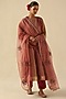 Featuring a peach kurta in handloom organza tissue silk and upada silk base. It is paired with modal satin pants and an organza dupatta having zari, nakshi, tilla and boota hand embroidery. Style it with statement earrings and embroidered juttis, perfect for daytime festive gatherings or pre-wedding events.