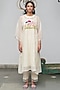 Featuring a pearled ivory kurta in chanderi cotton base with floral hand embroidery. It is paired with matching pants and a cotton slip.