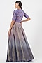 Featuring a periwinkle blue blouse in raw silk base with hand embroidery. It is paired with a matching ombre zari tissue lehenga and an organza dupatta having pitta sprinkles.