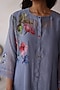 Featuring a periwinkle kurta in chanderi silk base with front panel, lace, french knot, beads, floral and applique hand embroidery. It is paired with cotton mul pants, a slip and a chanderi dupatta. Accentuate with statement jewellery and heels for a festive occasion or pooja ceremony.