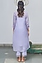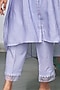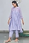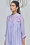 Featuring a periwinkle kurta in chanderi base with multi-color floral hand embroidery. It is paired with matching cotton pants and a dupatta having floral lace and organza panels.