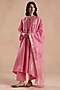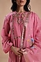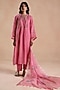 Featuring a pink kurta in chanderi silk base with floral embroidery. It is paired with cotton pants, a cotton slip and a zari boota chanderi silk dupatta. Style it with oxidised jewellery and heels for festive look or family celebrations.
