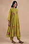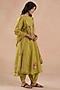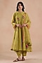 Featuring a pistachio green kurta in chanderi silk base with floral embroidery. It is paired with cotton pants, a cotton slip and an organza dupatta. Style it with oxidised jewellery and heels for festive look or family celebrations.